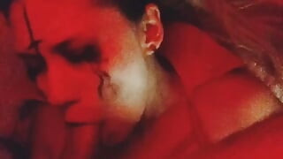 자지가 그녀와 함께 끝난 후 Donna Reds 예쁜 얼굴에 정액 스프레이